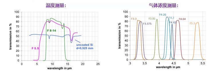 除了單通道版本(HIS A),我們還提供用于氣體濃度測量的雙通道版本 (HIS E222)。對于溫度測量,我們可以提供不同的標準溫度過(guò)濾器選項。對于氣體檢測,我們配備可以提供氣體特定中心波長(cháng)(CWL)和窄半功率帶寬(HPBW)的特殊濾光片。